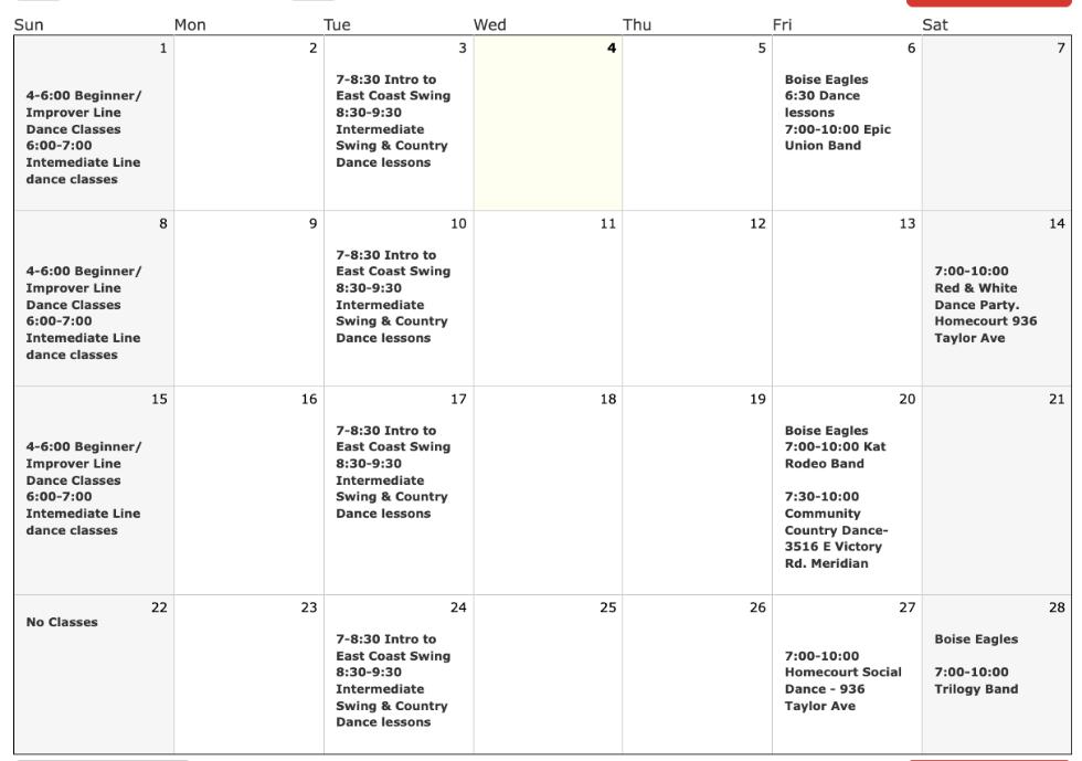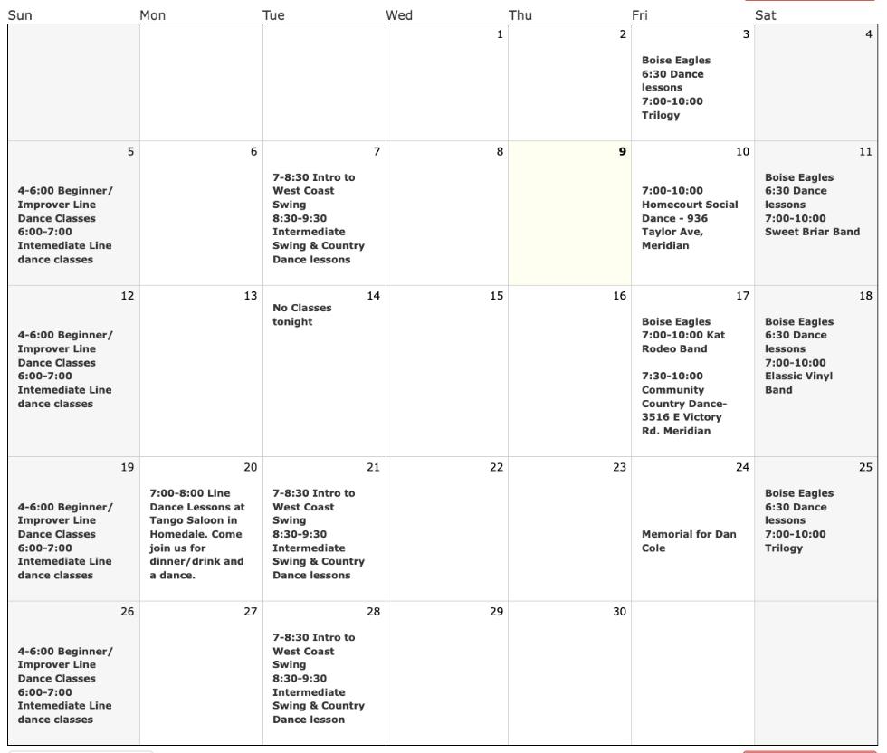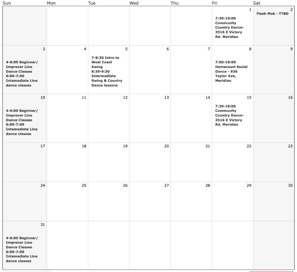 Register for the Sunday line dance classes and the Tuesday couples' classes with City of Meridian at